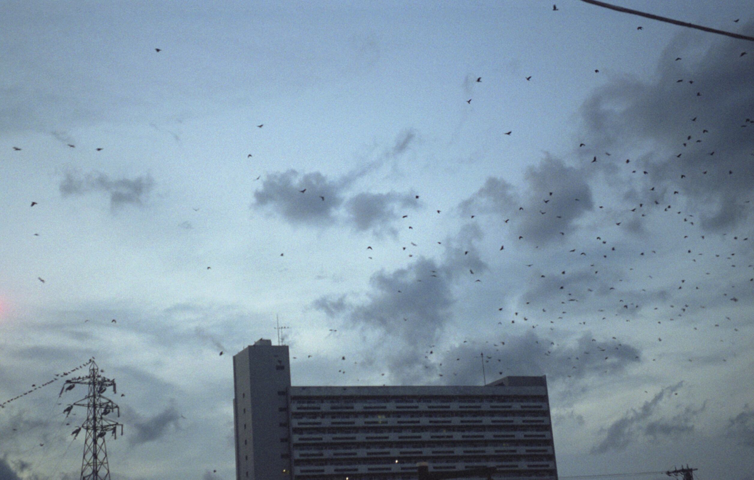 鳥の習性は、団体行動を彷彿とさせながらも自由さを感じます。動物の本能に対する羨望、生と非現実的を表します。